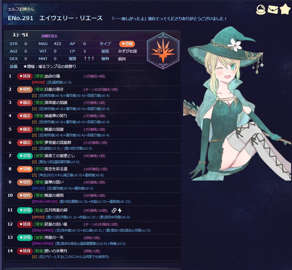 自称超かわいいエルフアバターの魔女。中身は男。Eno.291