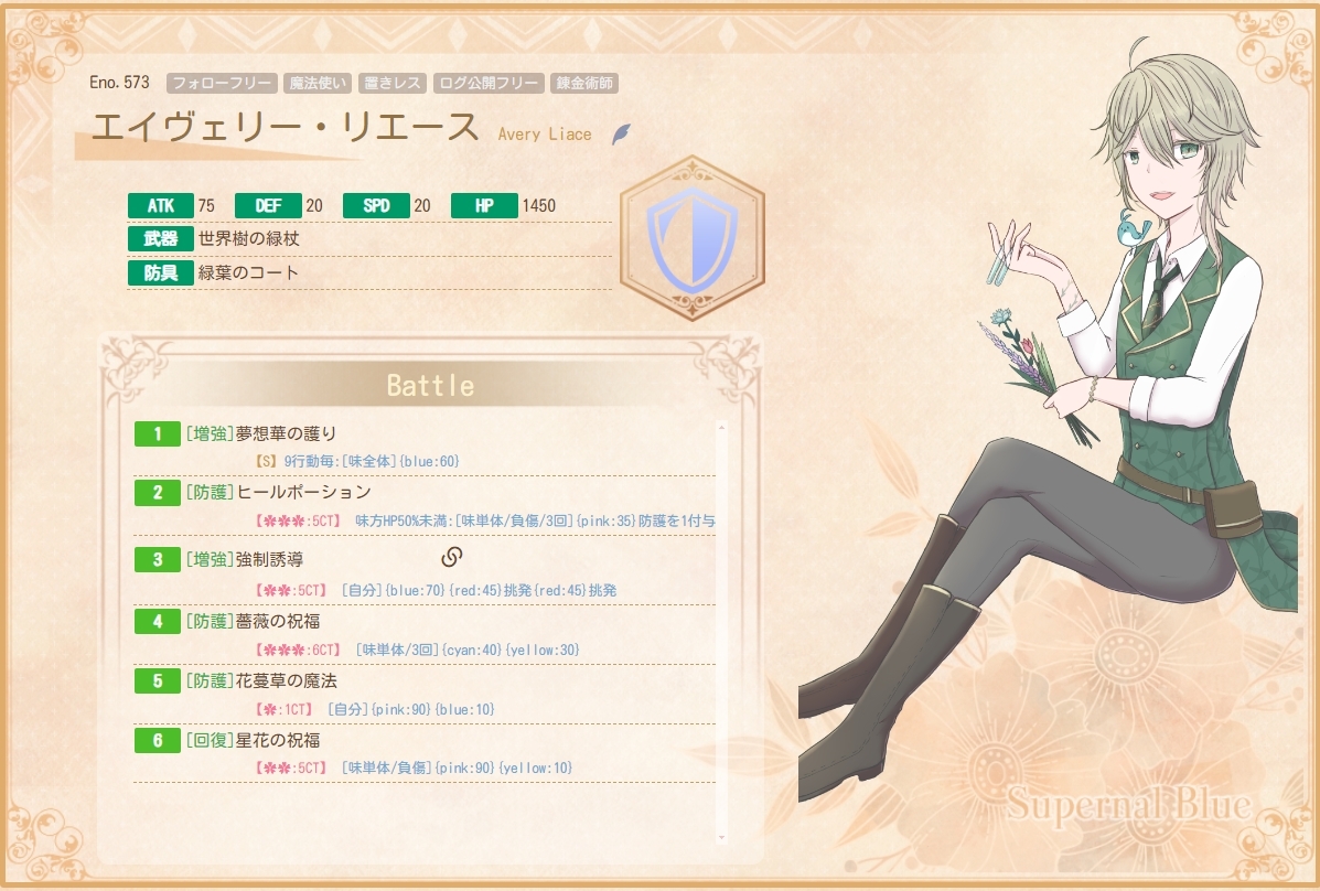 元人間の魔法使い。緑の魔女の唯一の弟子。Eno.573