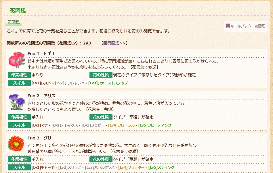 育てた花から得られるスキルには普通のスキルと異なりいくつかの追加能力を備えています。