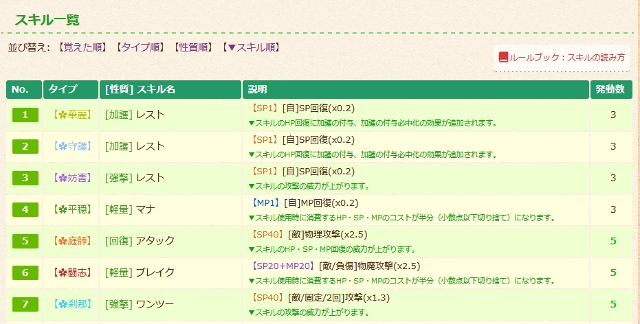 これらの追加能力はものによって固定だったりランダムだったりしますが、別のスキルと交配(スキル合成)することによって、スキルに狙った通りの追加能力をつけることができます。